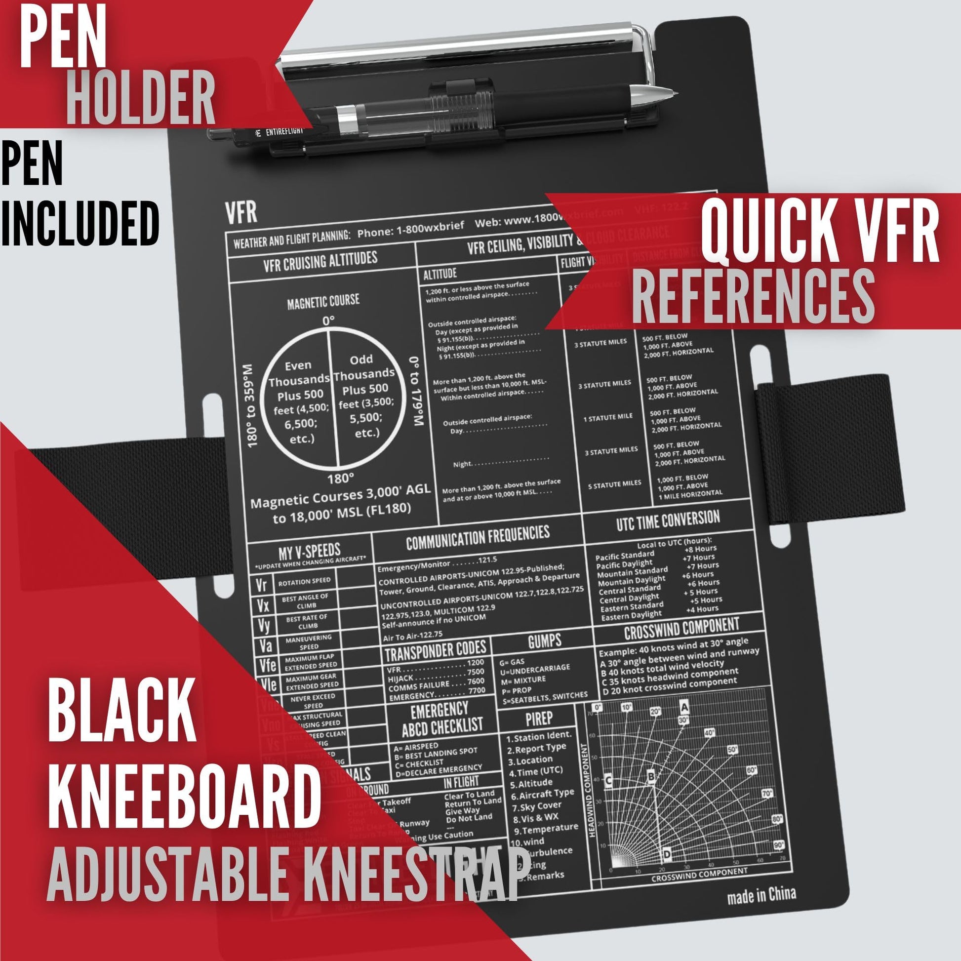 - PERFECT HOLIDAY GIFT FOR PILOTS - Includes a durable black aviation kneeboard with pen holder and elastic strap, plus a 40-sheet VFR notepad with premium paper—ideal for organized flights.