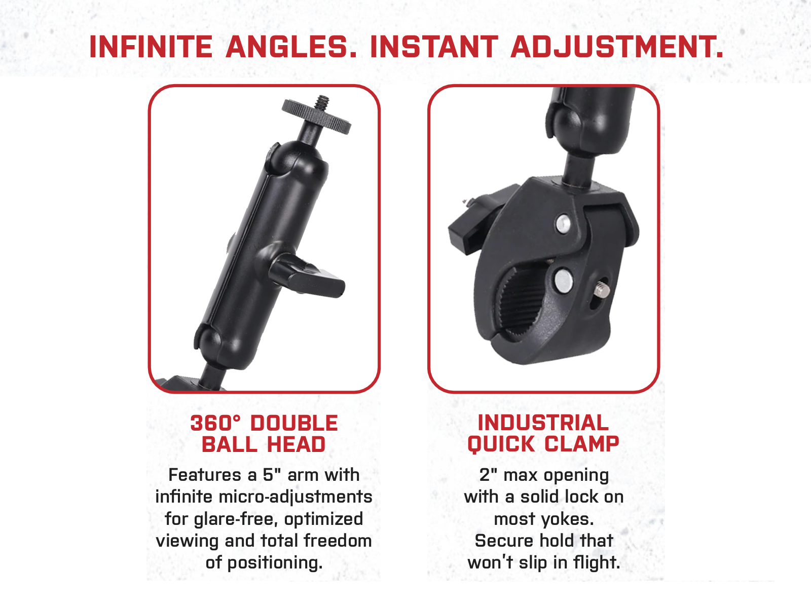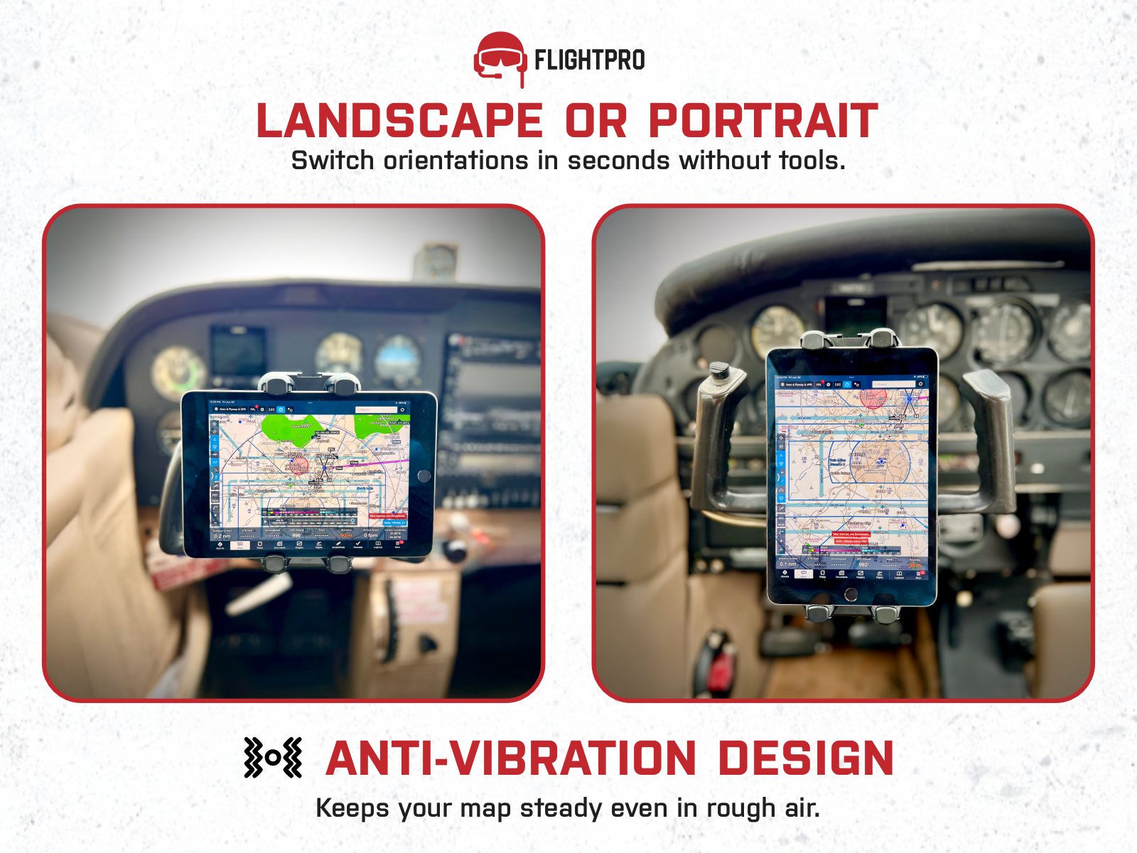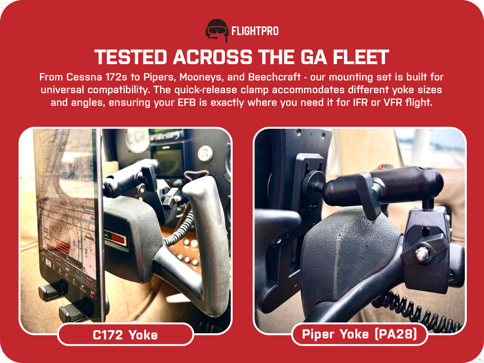 Secure yoke-mounted design keeps your iPad or tablet stable in flight