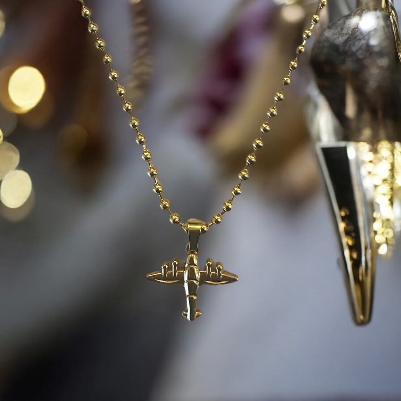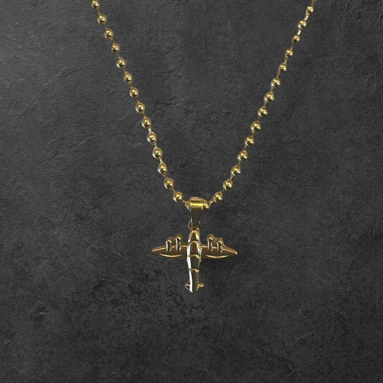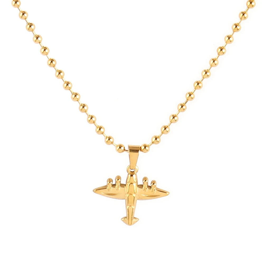 Gold Airplane Pendant Necklace – 316L Stainless Steel Aviation Jewelry